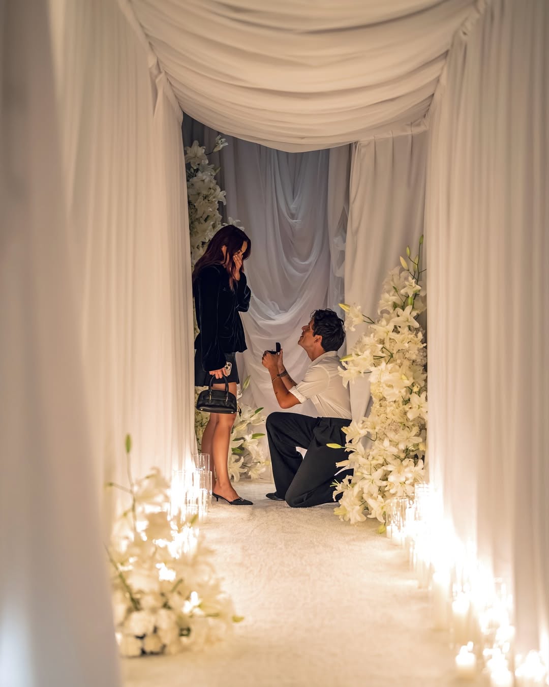 En un backdrop lleno de velas y flores blancas, el director de cine instaló el escenario perfecto para este momento tan especial. Su compromiso ha provocado que muchos otros hablen maravillas de la pareja: desde Katherine Langford de Love, Simon, Lili Reinhart, Vanessa Hudgens hasta Lana Condor de To All the Boys I’ve Loved Before, varias celebridades compartieron sus buenos deseos.