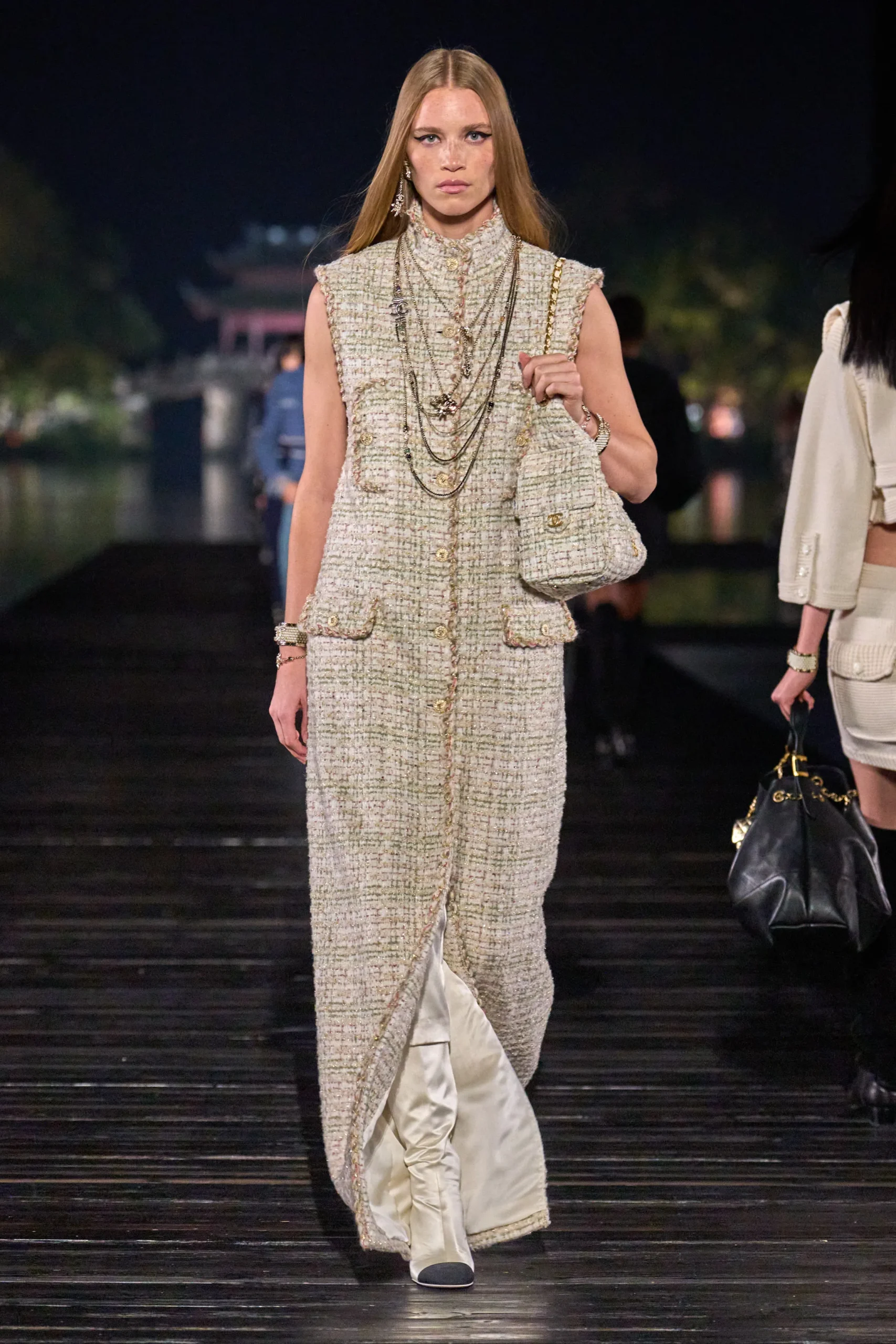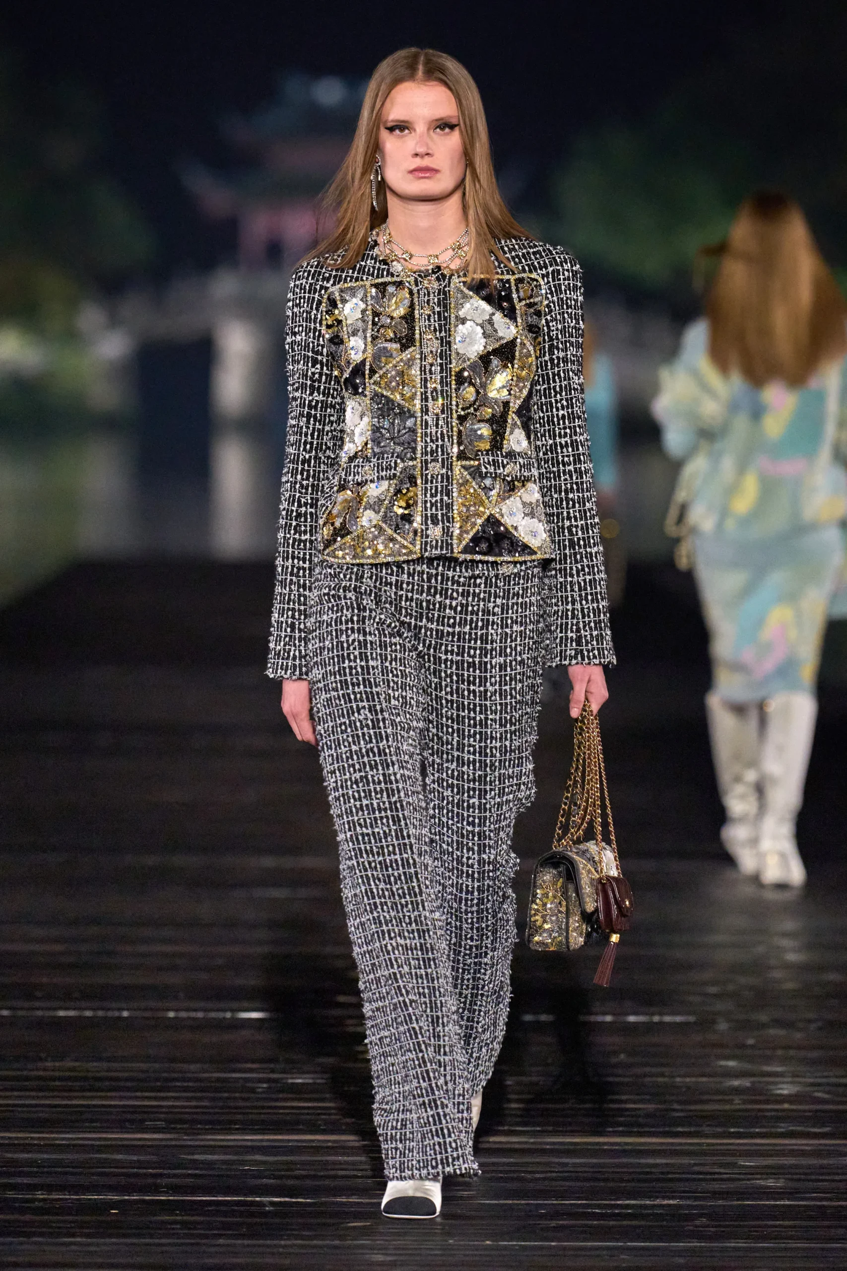 Realmente observas una visión adecuada y contemporánea que respete con sus exquisitos bordados y preciados usos hacia el arte milenario que intriga por sus misterios coloreados en tonalidades pasteles. Ese tradicionalismo es interpretado y unificado al legado de Chanel.