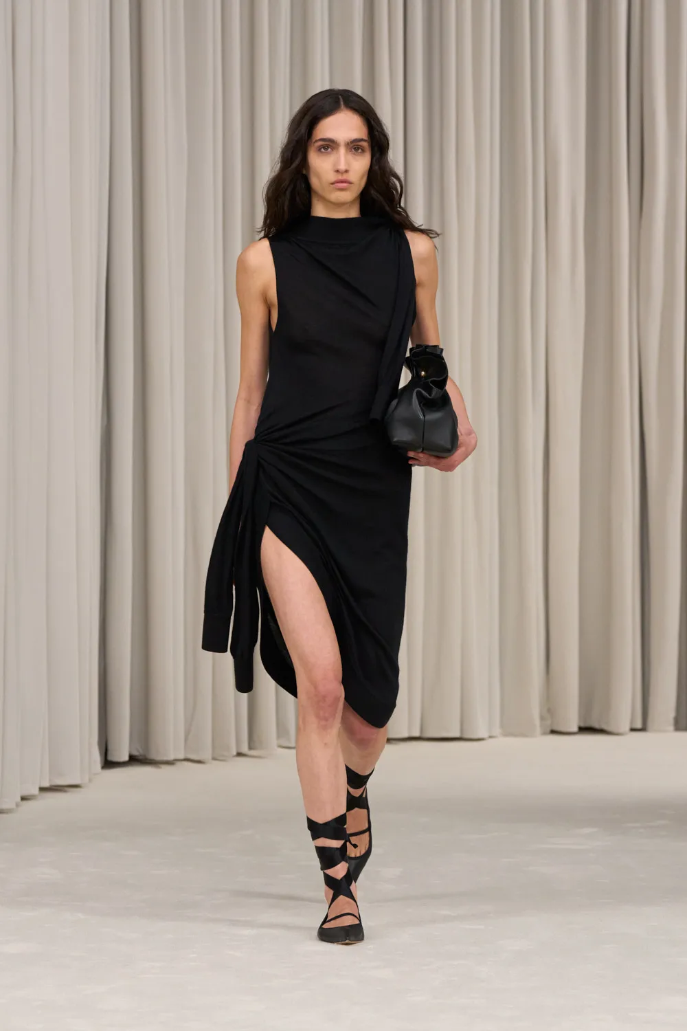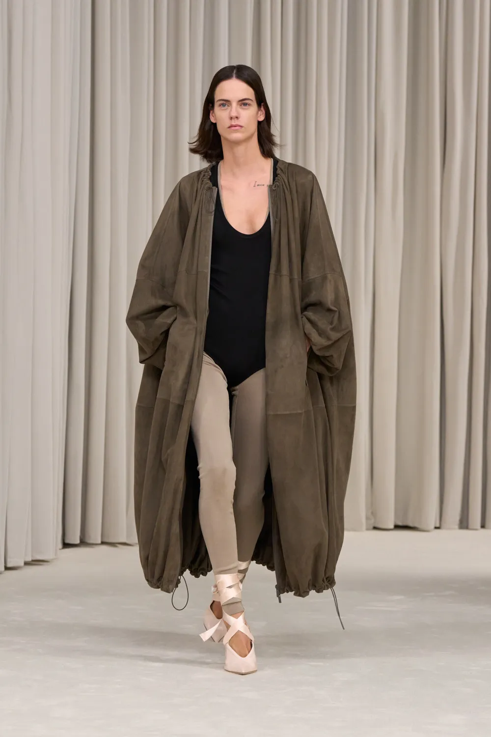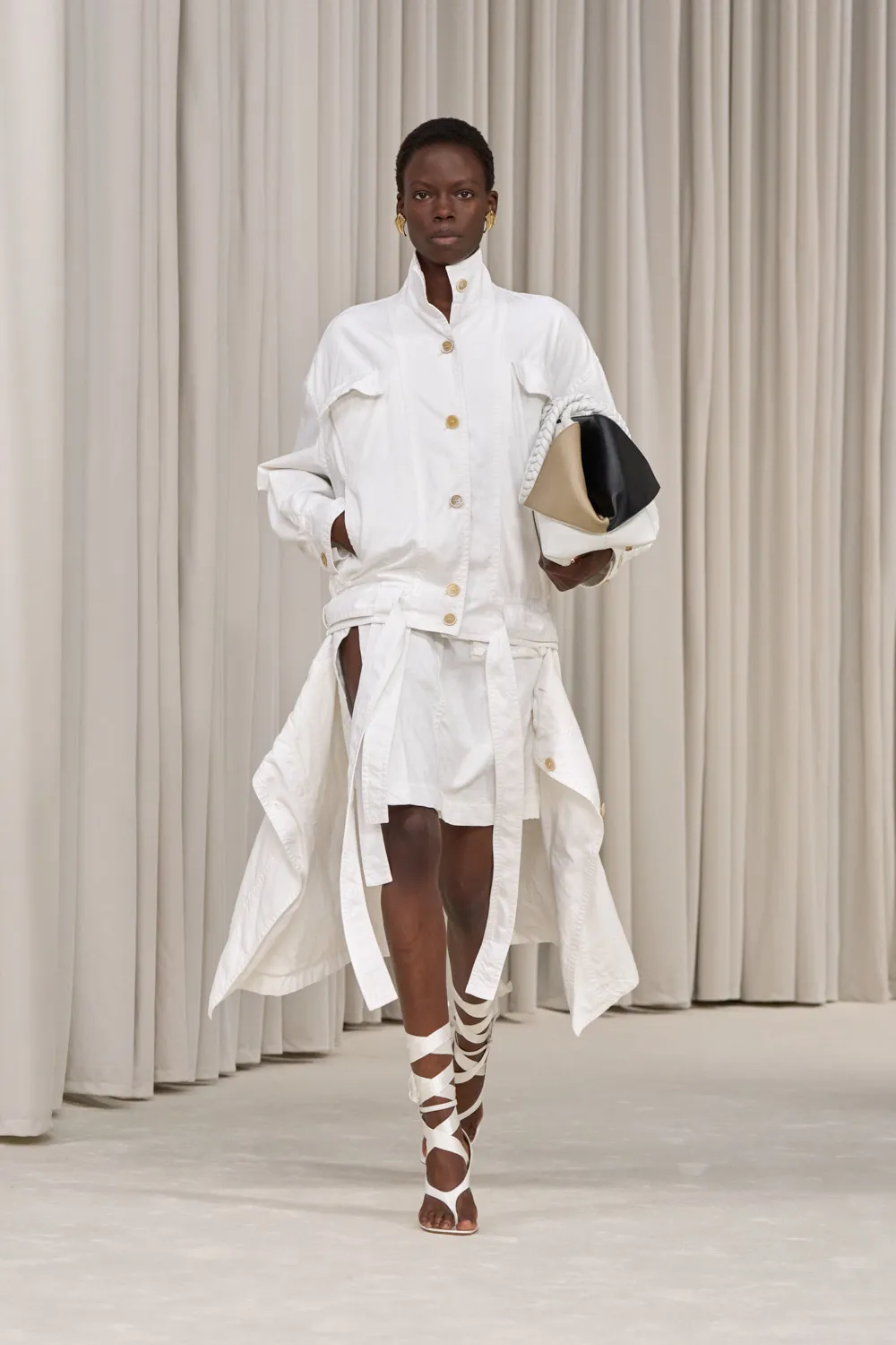 Algo que me sorprende en el temerario realismo que han adoptado los diseñadores, es la utilización tan pragmática de mostrar ropa arrugada como la normativa del día. Esa imperfección tan molesta, que tratamos de borrar con una plancha, ¡pum! Es símbolo de habitualidad y delicadeza mondo. En Ferragamo, Maximilian Davis cree que la tierna pulcritud del ballet, conjuga con su inspiración que se entrelaza entre la historia de la casa y la armonía de la danza.