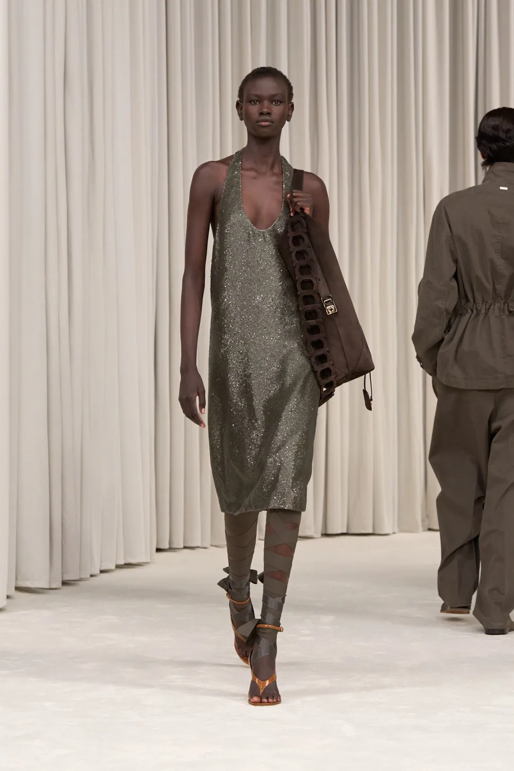 Bodies, leggings y zapatillas de satin con stilettos, eran adaptadas a los bruscos apuros de la mujer contemporánea, con capas-abrigo billowing de nailon con púas de metal. Presiento que Davis quiere ejercer un control de calidad al sportwear al introducir una vestimenta que cubra necesidades de estilo y ocasión, construyendo un guardarropa óptimo y lindo con chaquetas aerodinámicas y vestidos voluptuosamente asimétricos de silk knit, marcados por la herradura de Ferragamo en el pecho. Ese creativo esplendor, adopta formas muy ruidosas por su sexy eficacia remarcada por los adornantes flecos decaídos. Este alumnado se corrompe ante un romanticismo idealista, que da la sensación de fortalecer sus cuerpos con una resistente madurez tan urbanamente casual.