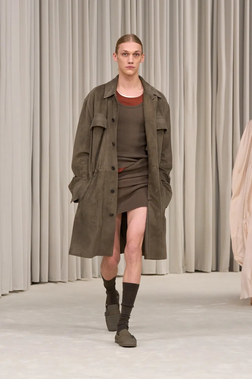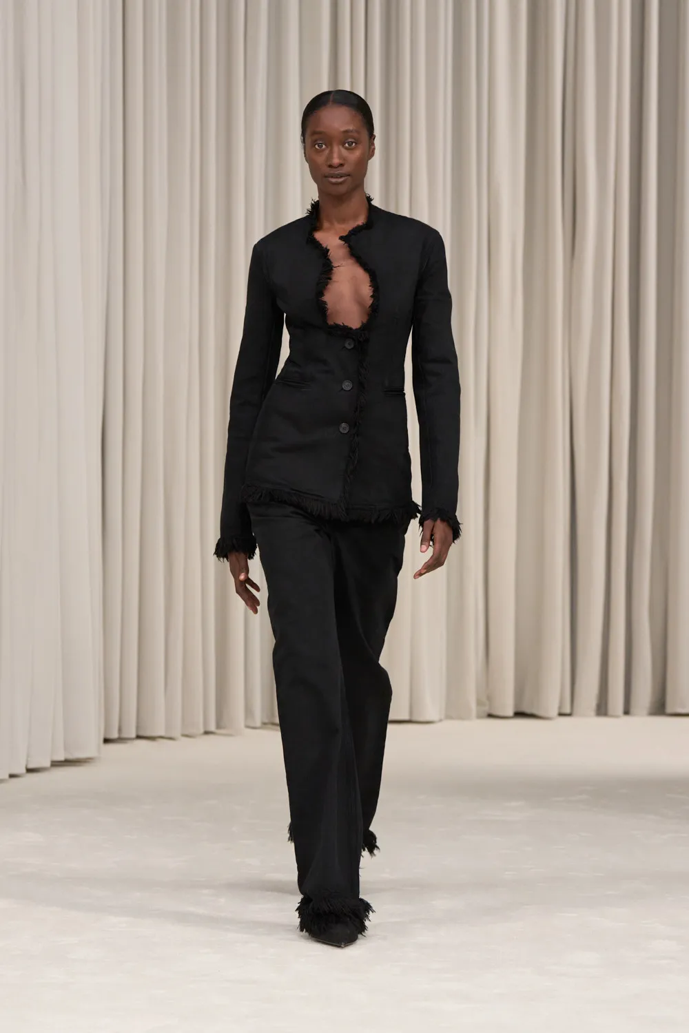 La ironía coreográfica fue acentuada por el fit orgánico que permite menearse por la simplicidad de sus telas aparentemente enjuagadas por tonalidades pasteles, arropadas en útiles camisas drapeadas y la rapidez de su estilismo. Inimaginable, el cuero es una alternativa que deja ir el perfeccionismo de una bailarina. Maximilian logra que nos perdamos en un éxtasis material que borra una frígida imagen.