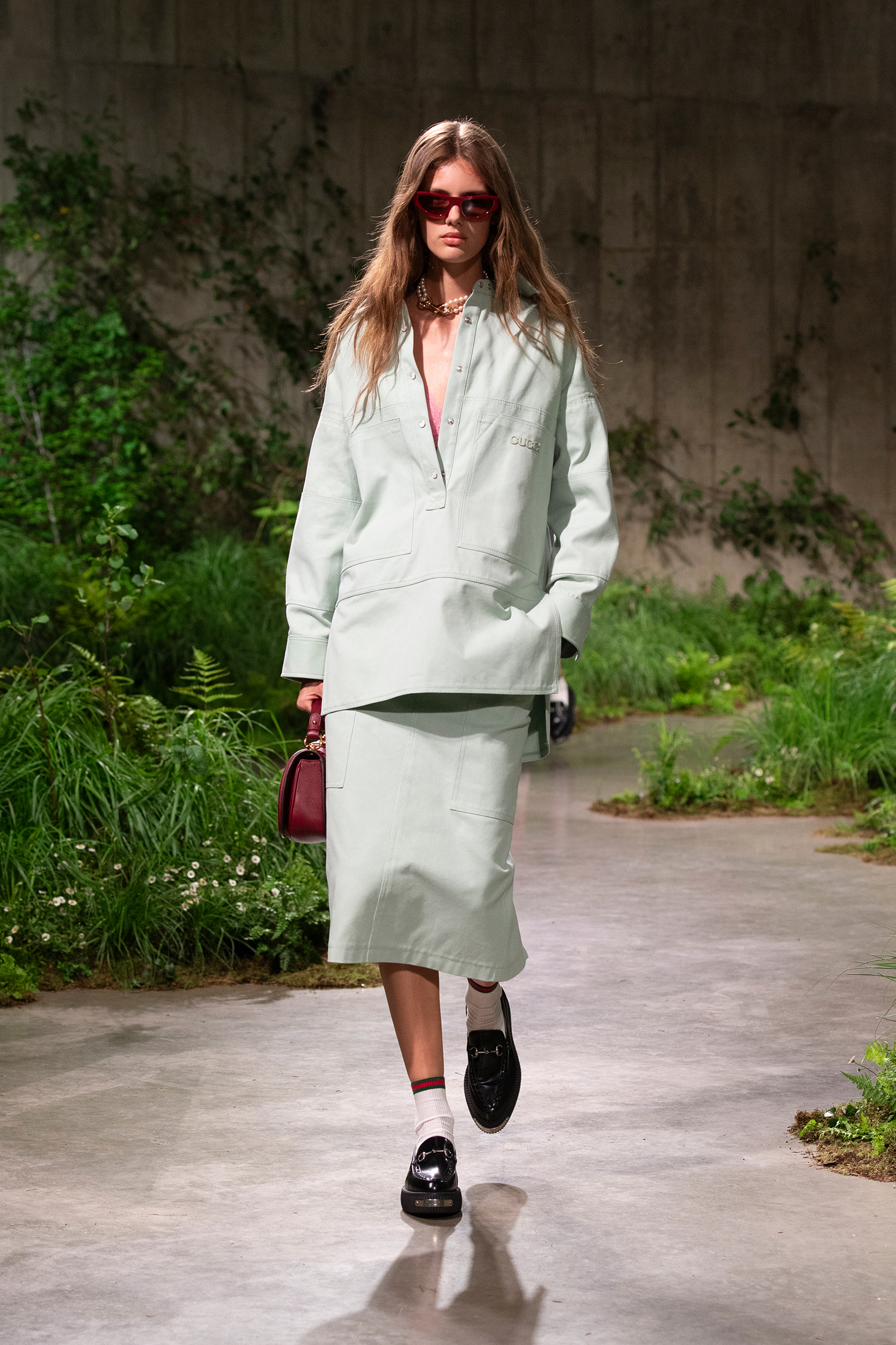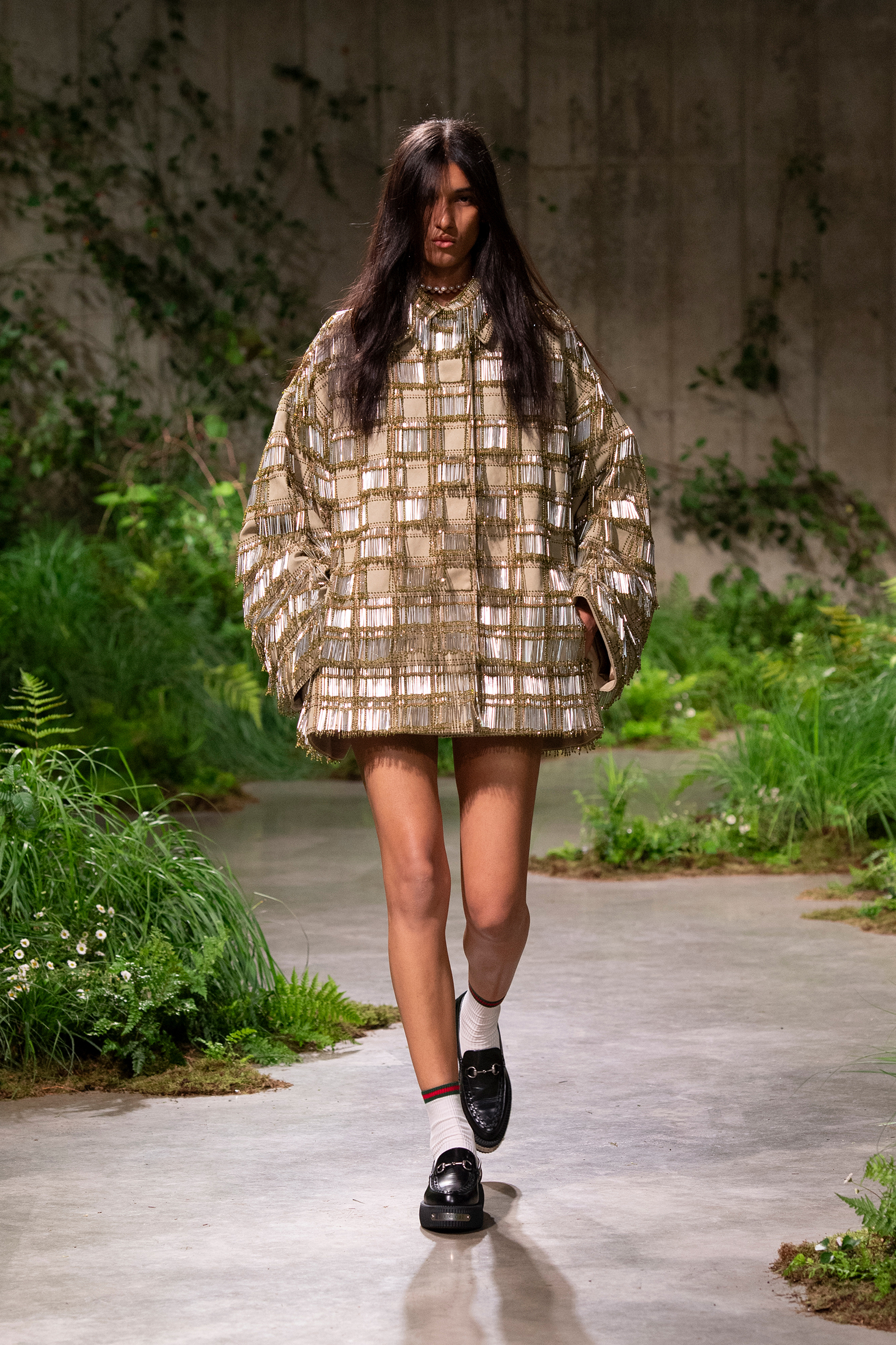 Los pastizales artificiales y la sobria aura, empujaron a Sabato a introducir una dinámica frescura minimalista o maximalista. Digamos que es un elegante refinado paraíso bohemio a la italiana. Además, la melancolía hippie es parte de la narrativa londinense, ya que el fundador de la casa, Guccio Gucci, durante su pasantía en el hotel The Savoy, se inspiró para crear su propia empresa de equipaje y cuero, a su regreso a Florencia, Italia. Con esto, es lógico retornar con una alegre personalidad, que expresa una unidad cultural mediante una delicadeza y solidez. Ropa muy deseable y prometedora, eso si.