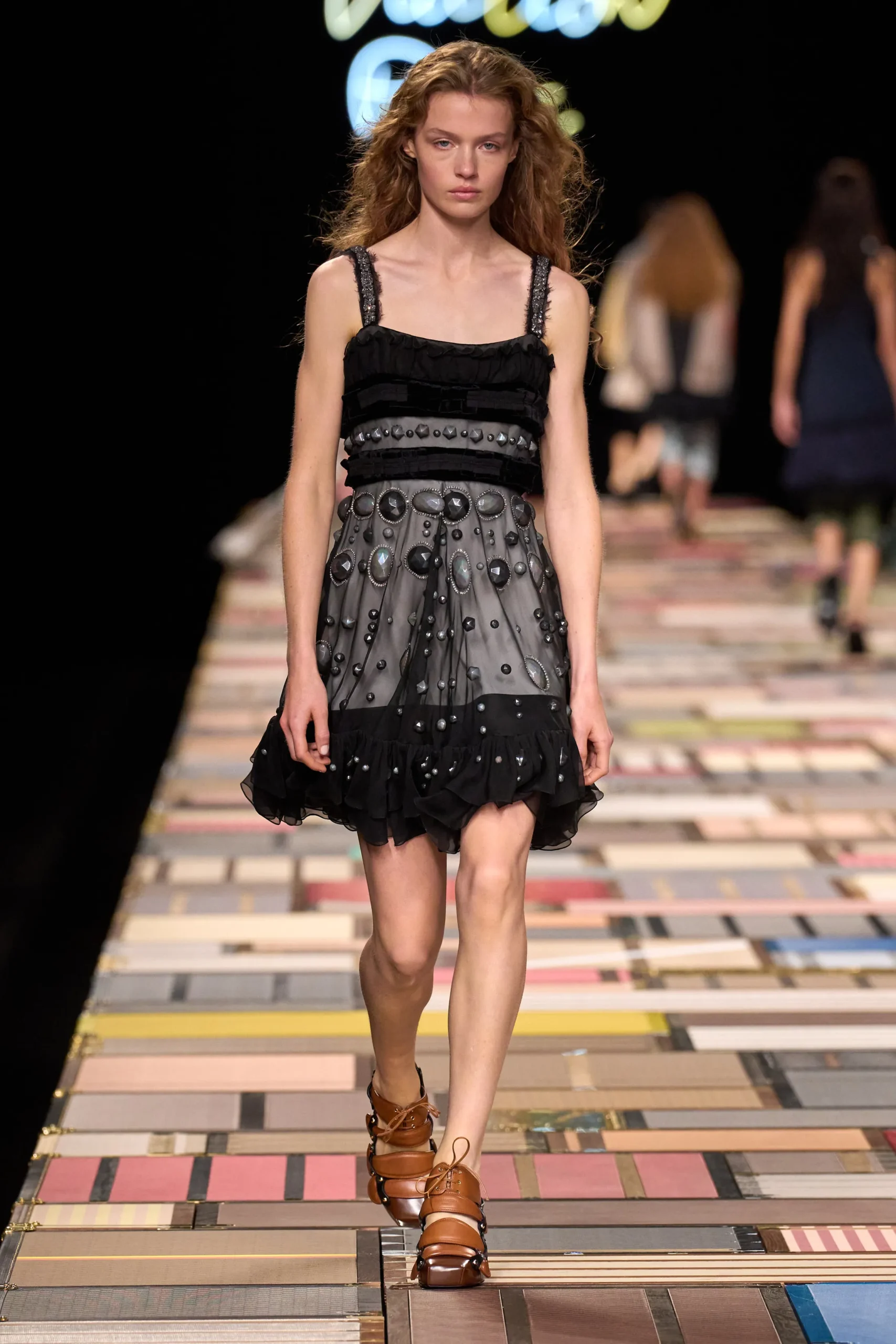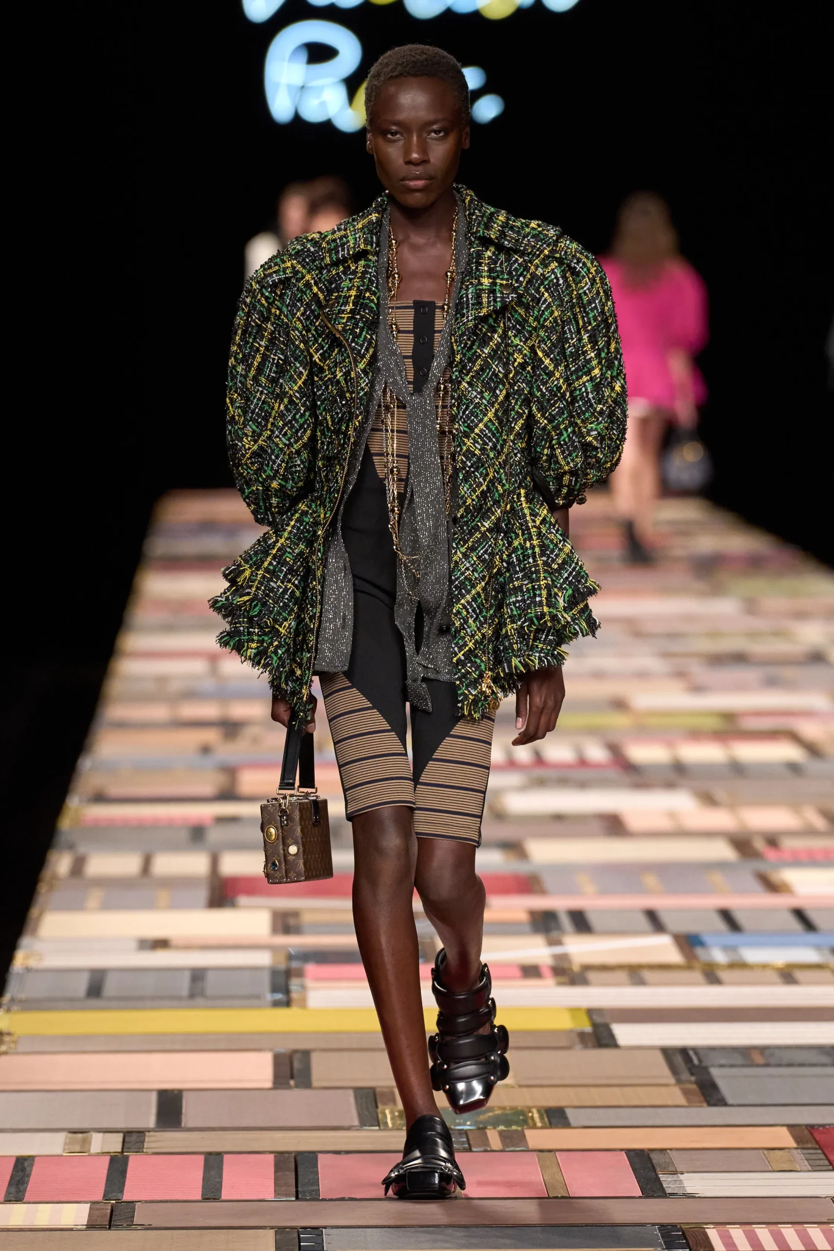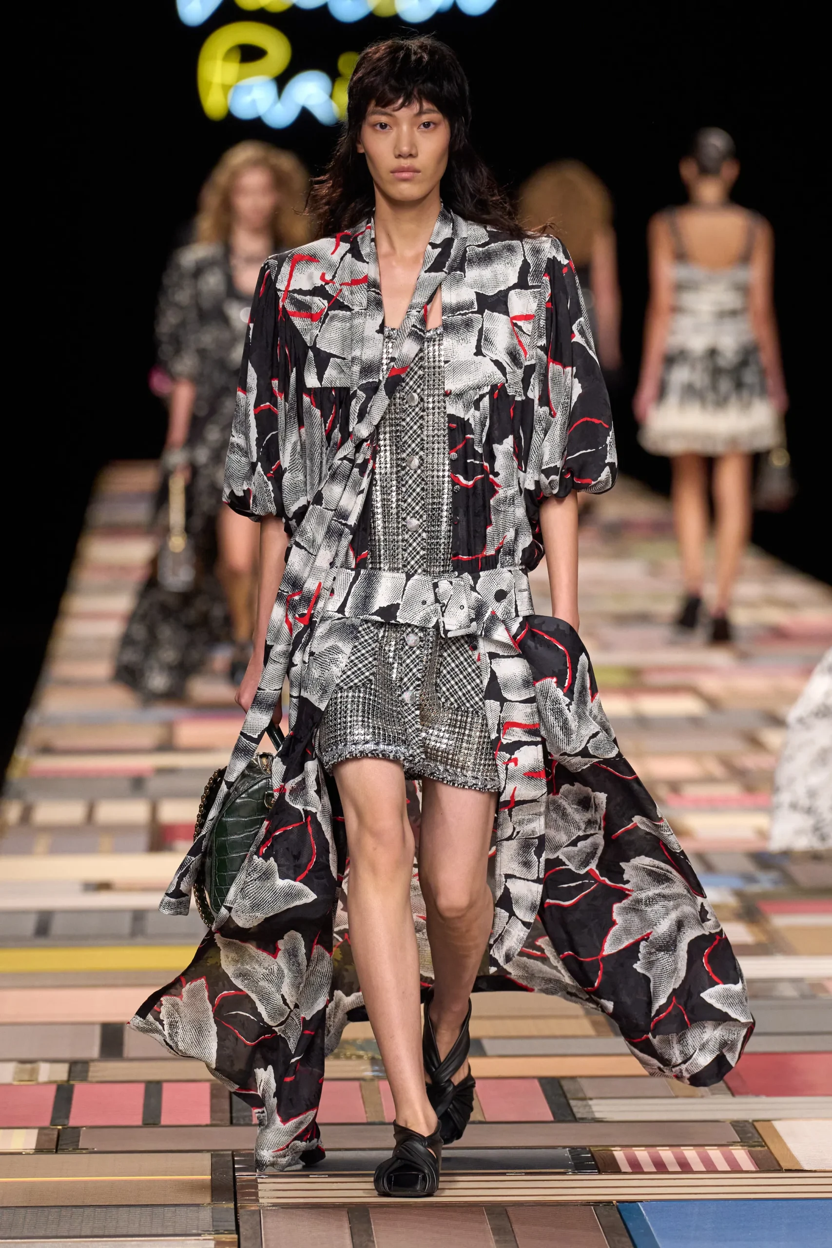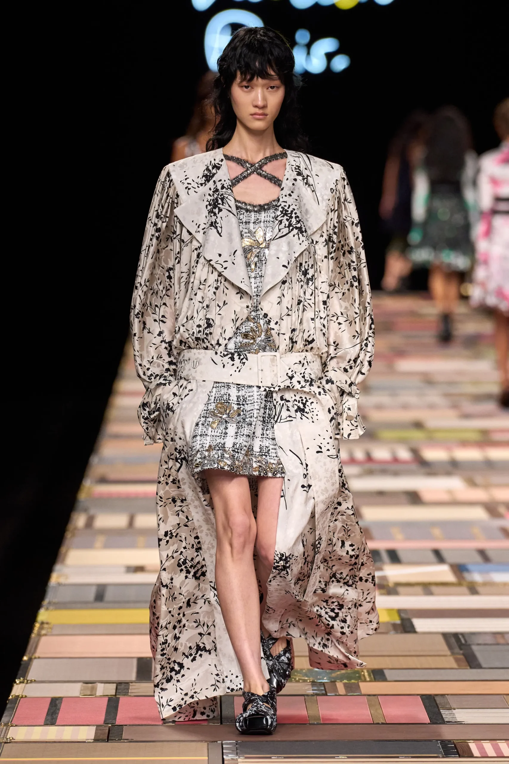 El oversize milimétricamente estático y valeroso, se ha convertido en un sello personal de Louis Vuitton, en su fase exquisitamente viajera. Celebrando su décimo aniversario en la maison, peligrosamente, sabotea lindamente y energéticamente, con sus pantalones pijama o de ciclista de maratón y gruesas sandalias, que evocaban un íntimo pasado, rebosante de ligera fluidez con estructuras arquitectónicas, reflejadas en eclécticos camisones drop-waist, llenos de estampados florales y adheridas piedras de río.