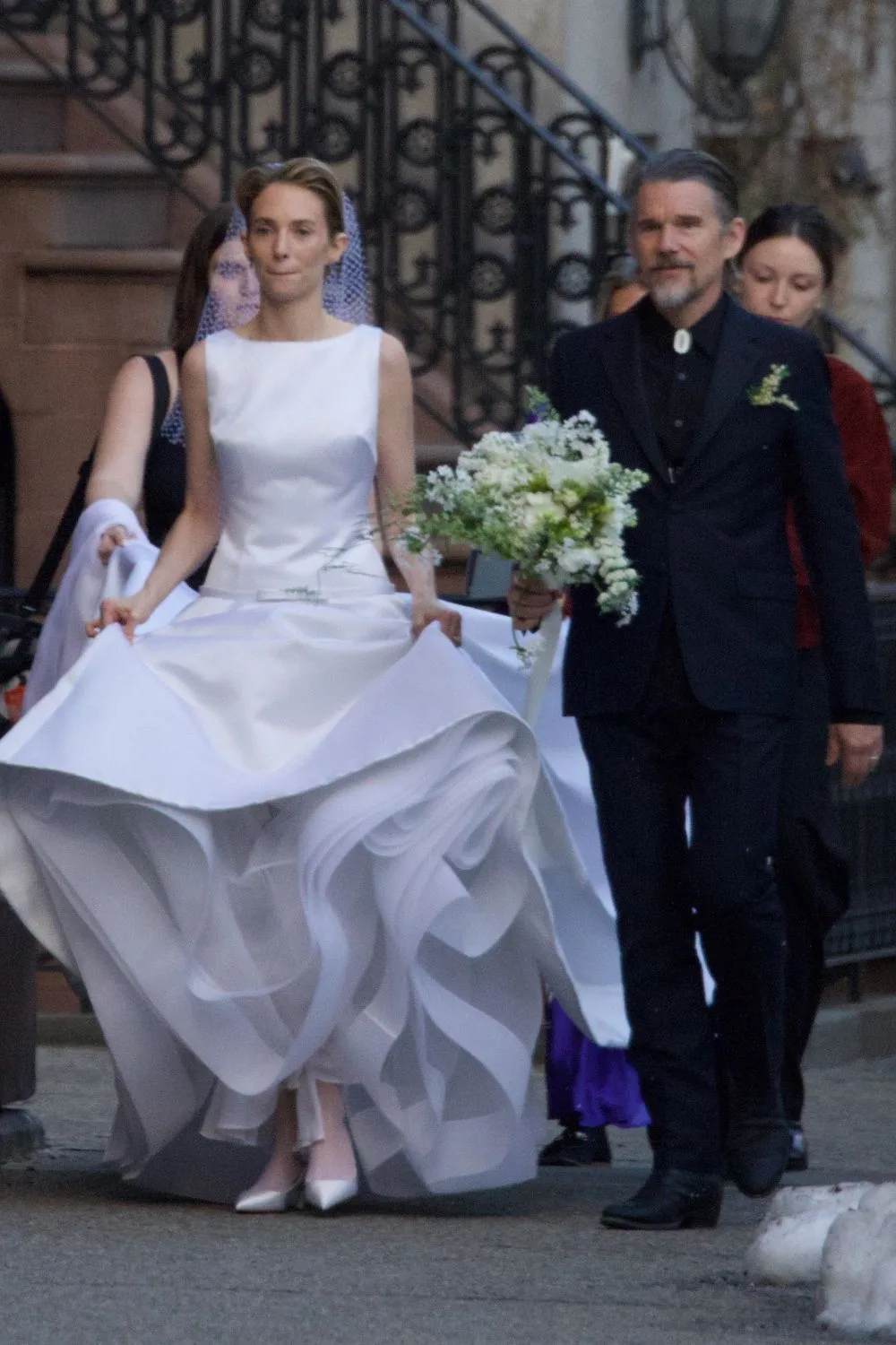 La estrella de Stranger Things y el compositor estadounidense dieron el “sí” acompañados de varios de sus amigos y sus padres, mientras caminaban por las calles de Nueva York vestidos de gala.