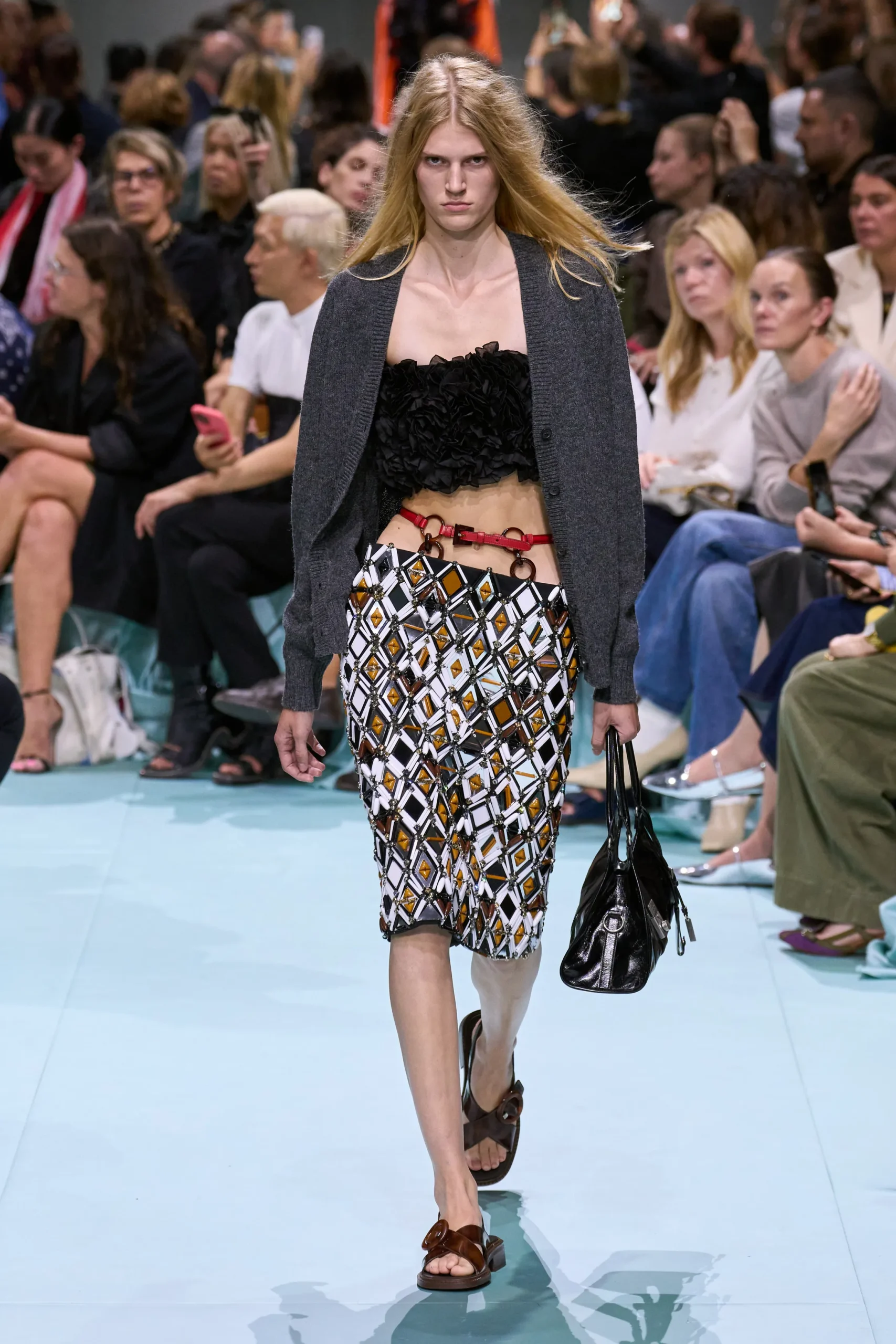 El mix es tan diverso, uniforme, pero no nada coincide o se parece del uno con el otro. Conecta y sintetiza con las vivencias que padecemos, al reforzar un glamour distinto y contradictorio, mismo que excita por ser tan diferente – es tan impredecible como los astros. Utilizan ingredientes que dan sazón a lo raro en una picante degustación, que no enchila, sino, endulza. El archivo es la melancólica especia que le da perfección a lo ilógico que puede llegar a ser el Prada del mañana. Los jovenes aman poseer algo peculiar en sus closets y Miuccia entiende sus necesidades de remarcar sus personalidades con una lindura corrompida.
