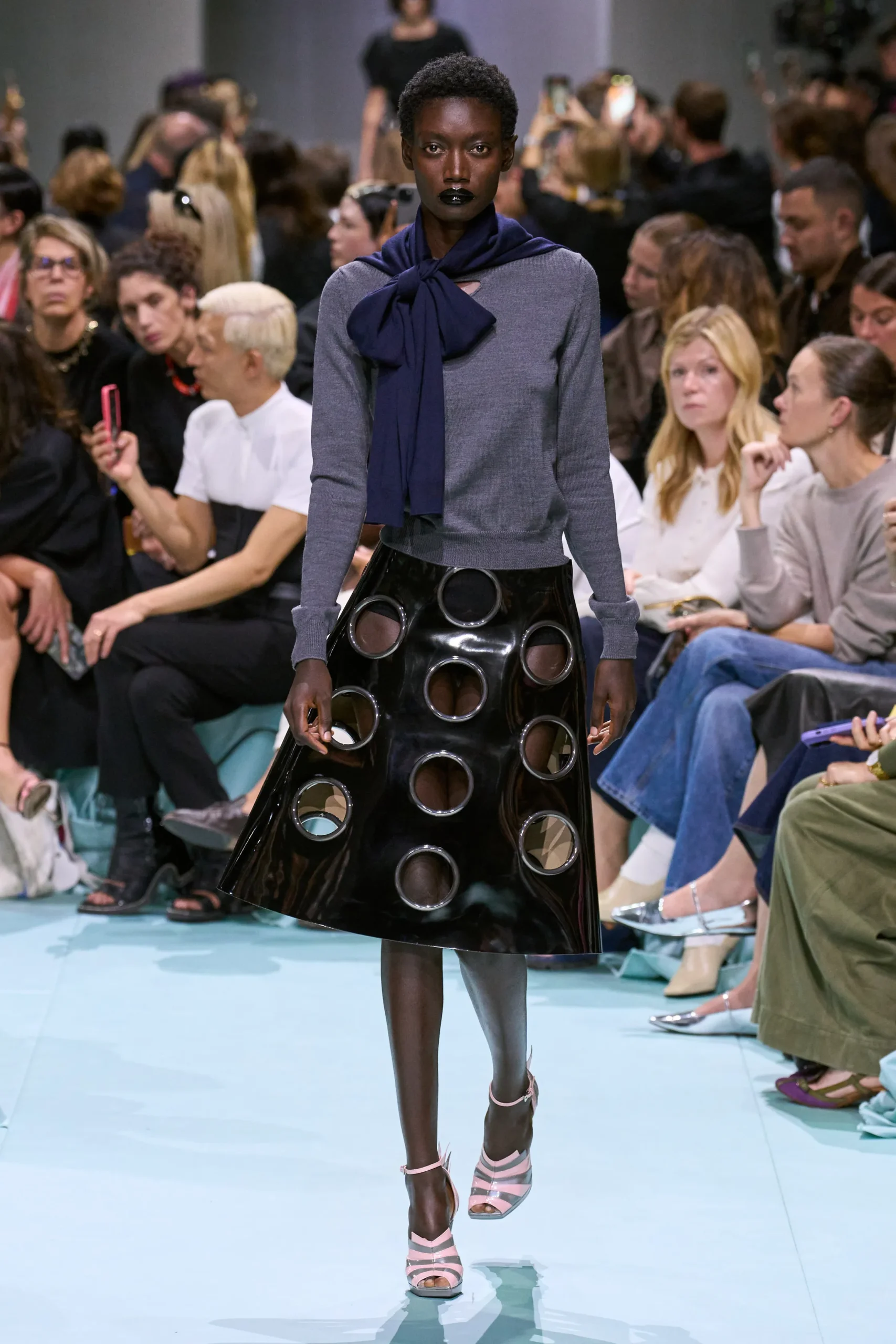 Miuccia Prada y Raf Simons parecen disfrutar de la locura que nos genera la tecnología. Aquellos algoritmos que pernean nuestro entendimiento, ofreciéndonos alternativas que discurren nuestra realidad, transformándola en una falsedad rentable, mismas que dirigen nuestra vida, inconscientemente, es el punto de quiebre que ambos toman como inspiración. Esa perversión digital, no es criticada, más bien, es utilizada en una expresión material que parecía añorar lo que un teléfono no puede ofrecer: carisma humana que nos baje de la nube y mostrar la realidad que evitamos confrontar, dandole sentido a todo.