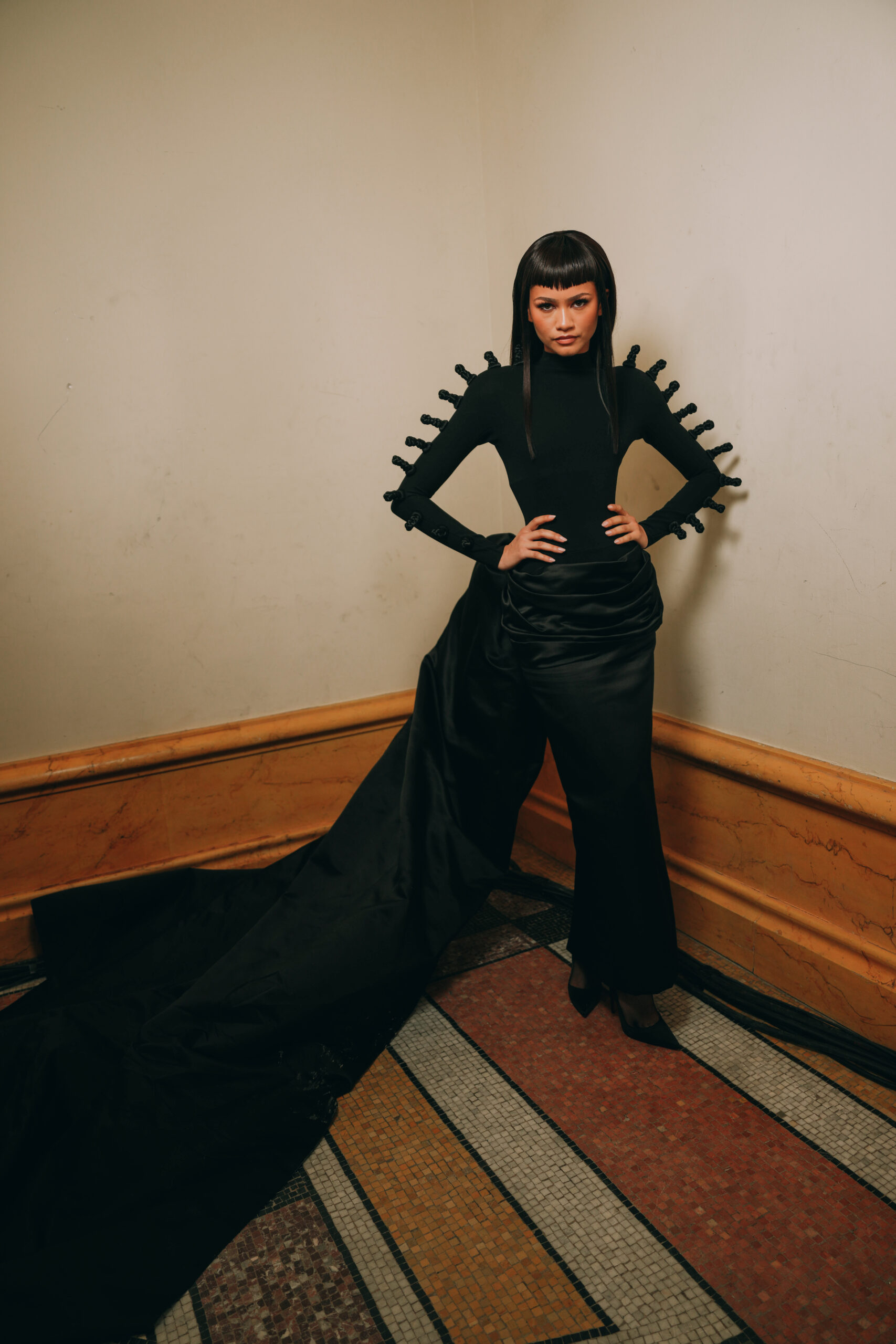 Sin duda nuestro favorito fue Schiaparelli, en definitiva esta colección se llevó las palmas desde el inicio con la llegada triunfal de Zendaya y Hunter Schafer, ambas con estilos diferentes pero representando lo nuevo que viene para la marca un estilo bastante futurista que combina la tecnologìa retro, pelìculas clásicas de ciencia ficción y en palabras del diseñador referencias a los grandes costureros del pasado.