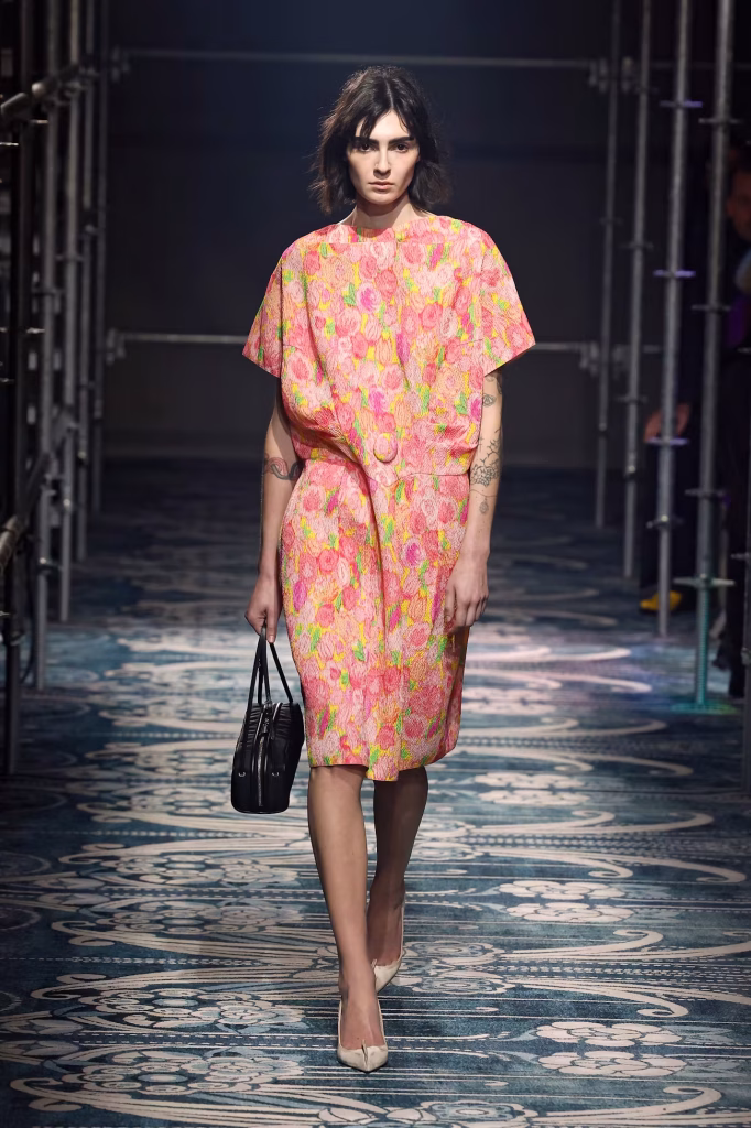 Obvio, las marcas grandes ya olieron el trend. Prada presentó vestidos oversized con prints inquietantes (Chloë Sevigny me confesó que ya los tiene en su wishlist), y Bally, Balenciaga o Eckhaus Latta hicieron lo mismo. El statement es claro: la fealdad se volvió estética. Demna y Miuccia nos están diciendo que este es oficialmente the season of ugly floral dresses.
